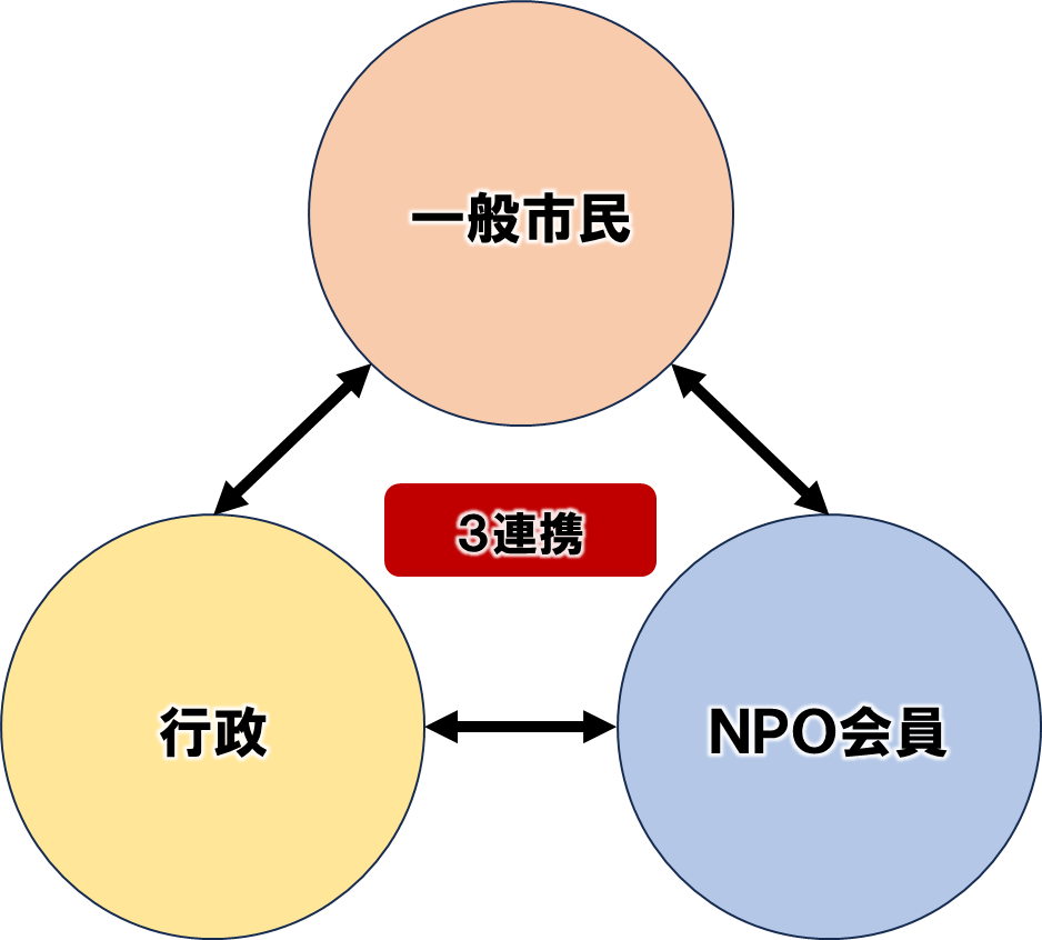 ・NPO活動3連携(市民・行政・NPO会員)を目指す団体
